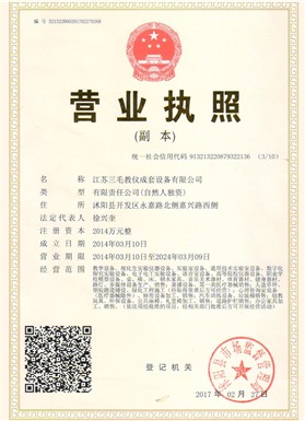 江蘇三毛教儀成套設備有限公司是一家集設計、生產、銷售、售后為一體的大型制造企業(yè)。坐落于風景秀麗的花木之鄉(xiāng)、全國經(jīng)濟百強縣、國家級經(jīng)濟開發(fā)區(qū)沭陽縣永嘉路。